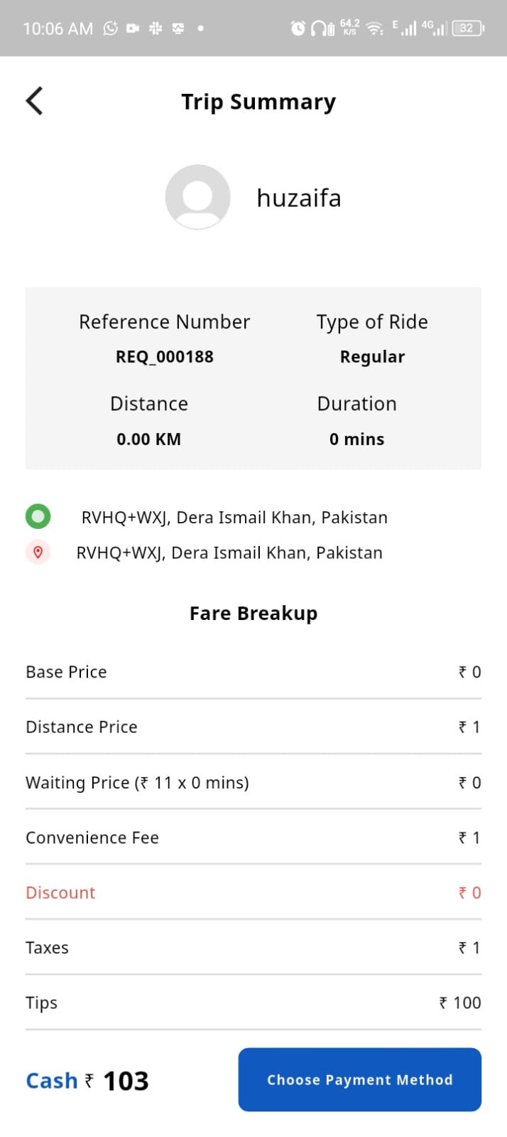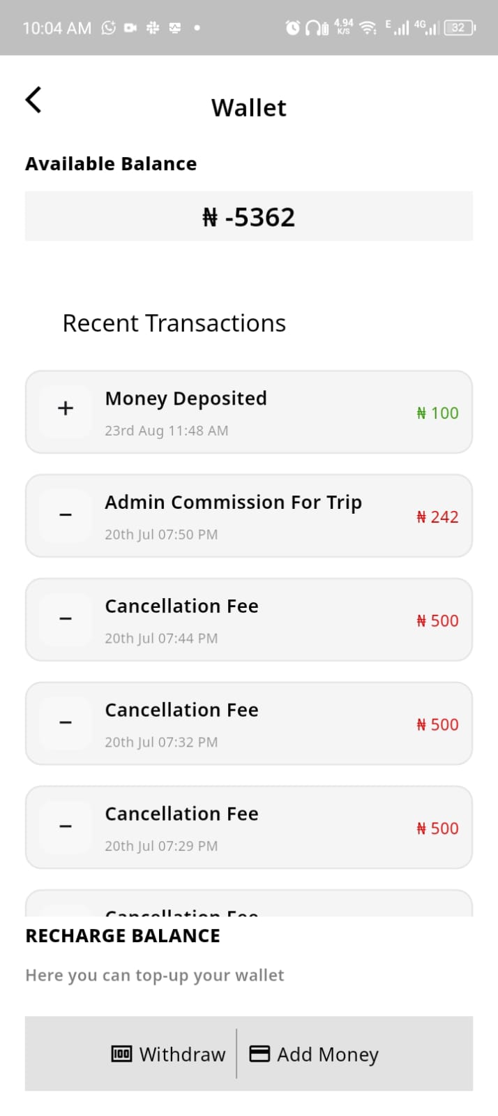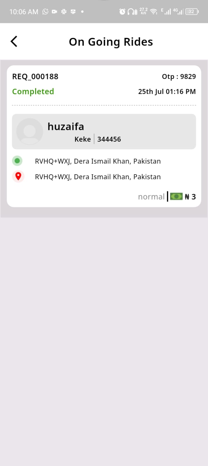 Status Updates: Live notifications for driver arrival, trip start, and trip completion.